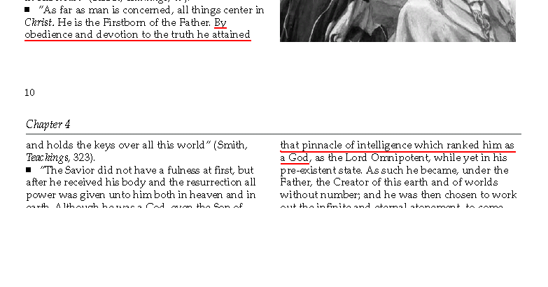 "By obedience and devotion to the truth he (Jesus) attained that pinnacle of intelligence which ranked him as a God, as the Lord